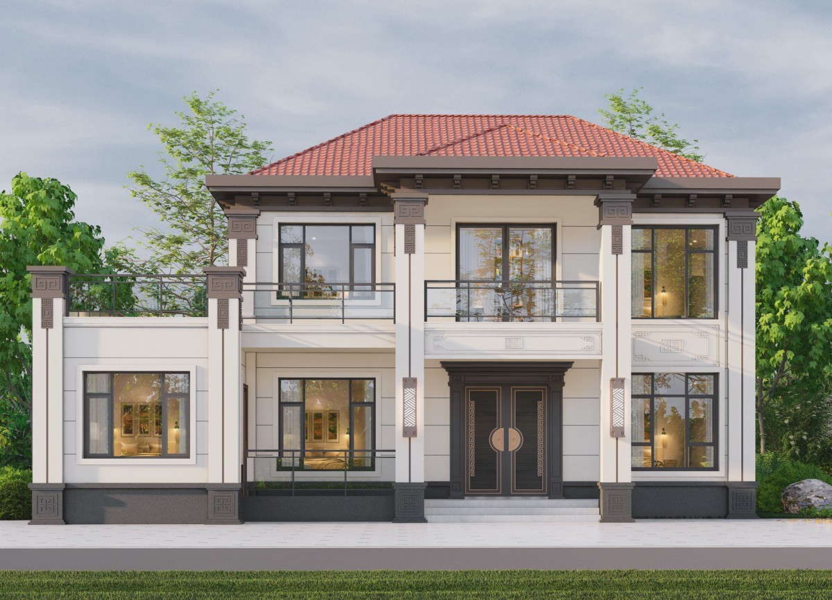 松原005 两层新中式(11.36x11.76米)-【易设计】